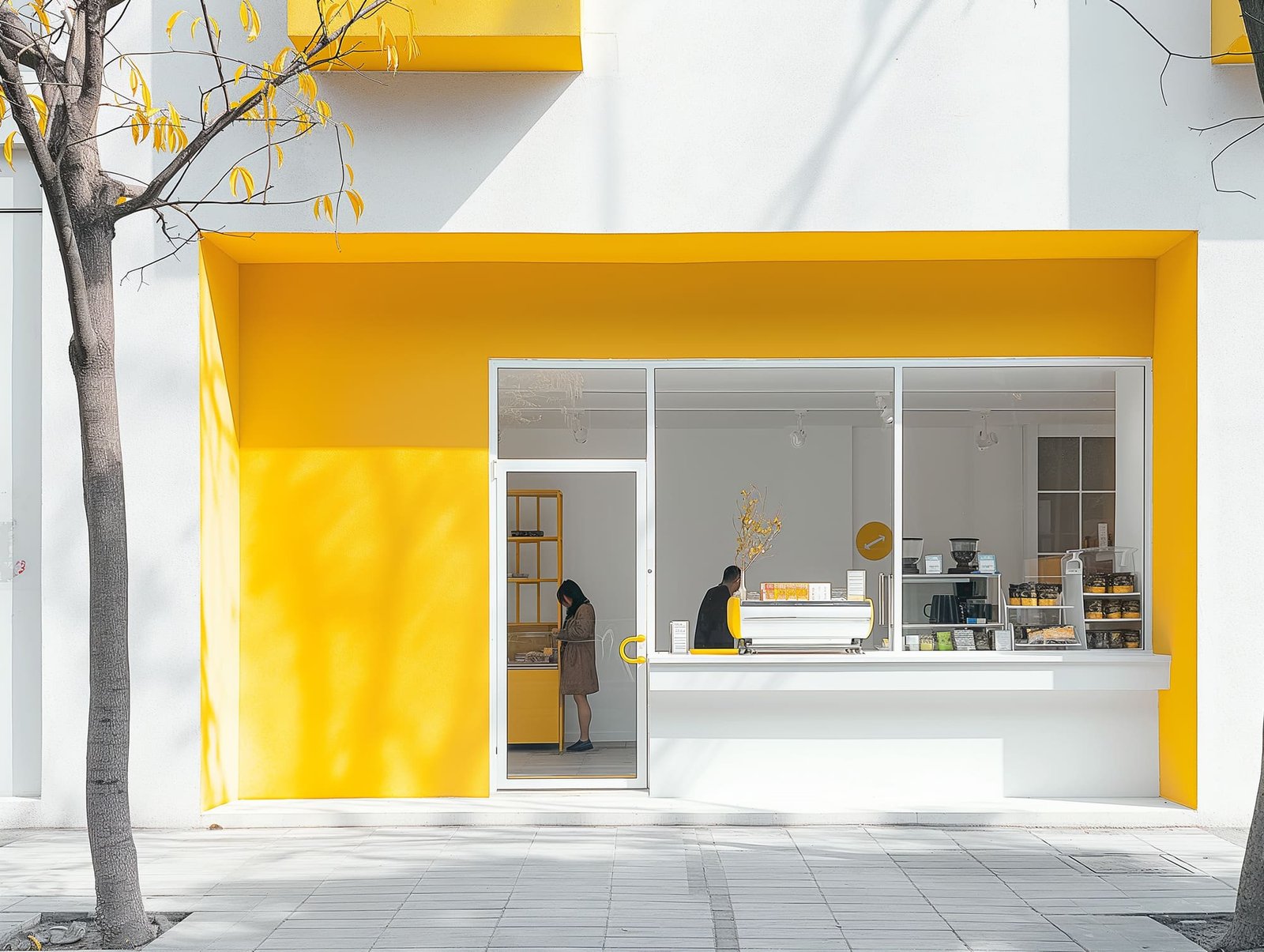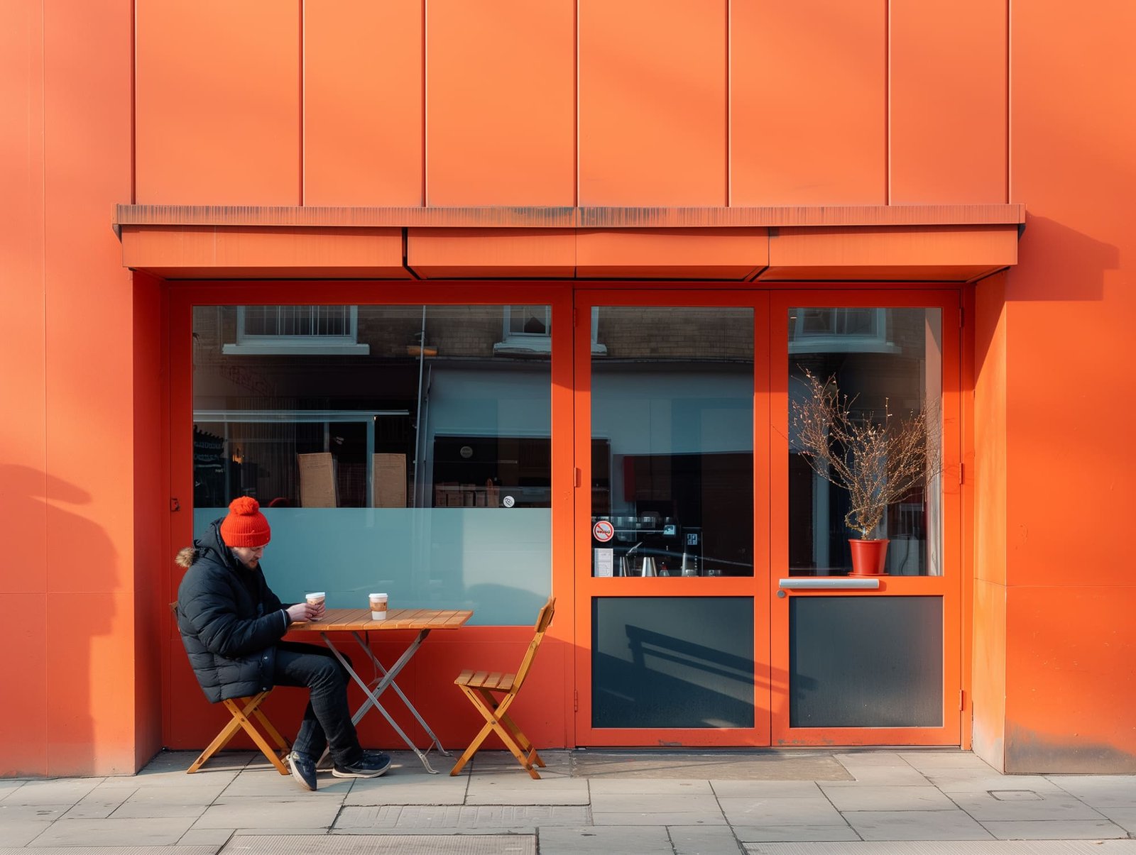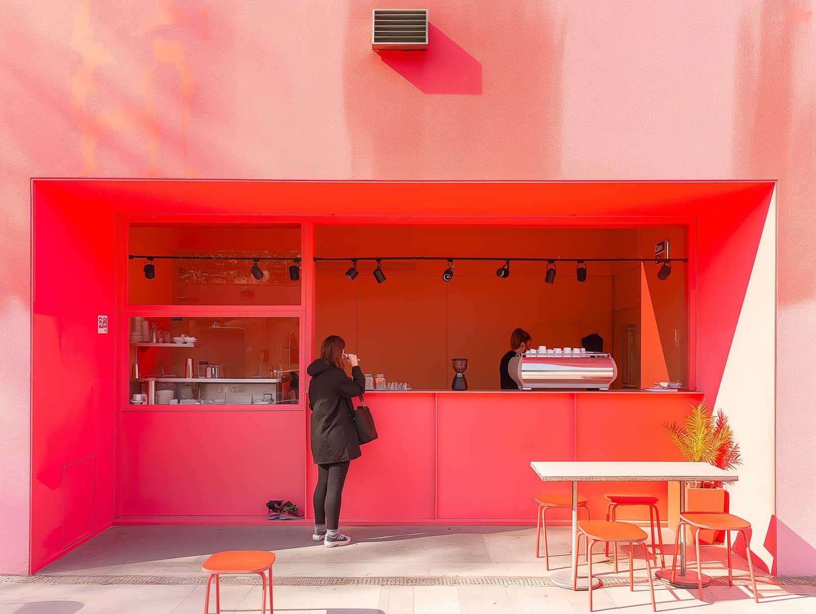 At the heart of Urban Regeneration lies a visionary design philosophy that balances aesthetic appeal with functional space. Each café storefront, characterized by a distinct monochromatic theme, not only serves as a visual landmark but also harmonizes with Stratton’s urban fabric. The design process was deeply rooted in the ethos of ‘form follows function’, with every element serving a purpose – from the ergonomically designed furniture to the energy-efficient layout that maximizes natural light. The use of striking colors serves as a beacon of warmth and invitation, transforming these spaces into modern oases amidst the urban hustle. This approach has not only revitalized the city’s image but also laid down a blueprint for integrating modern design principles into community-centric spaces.
