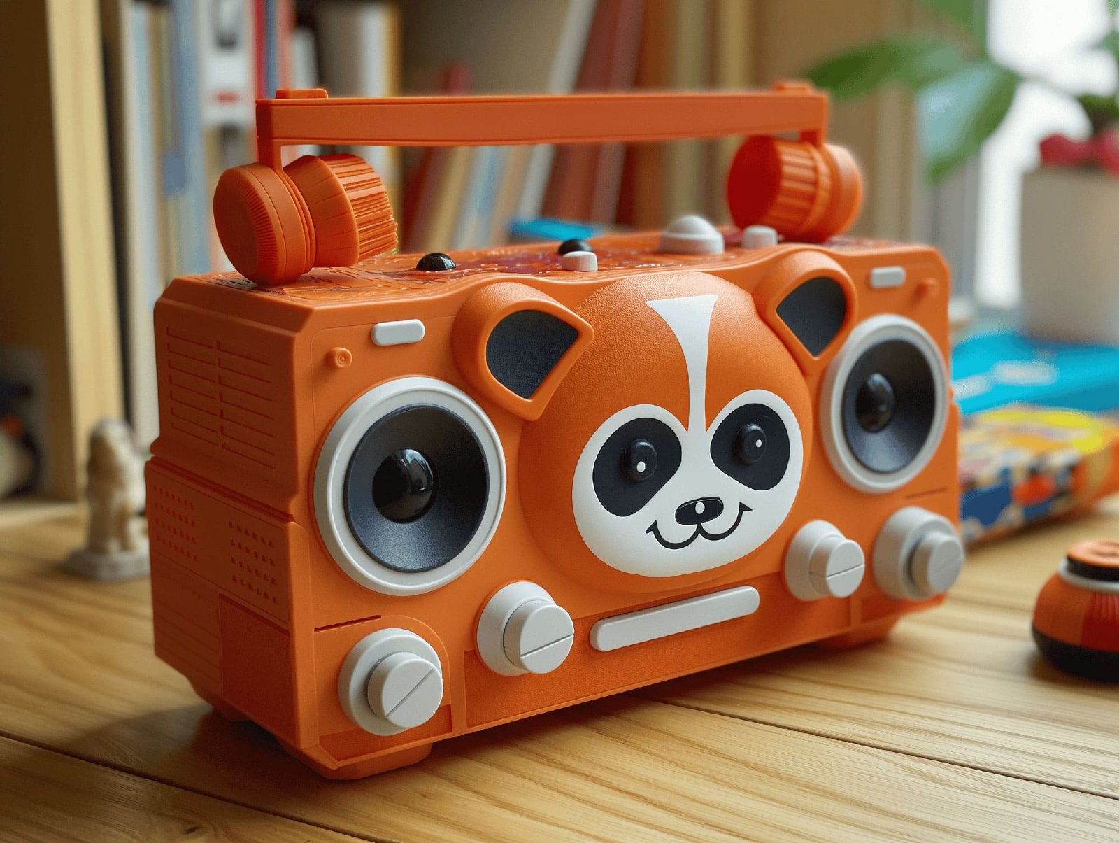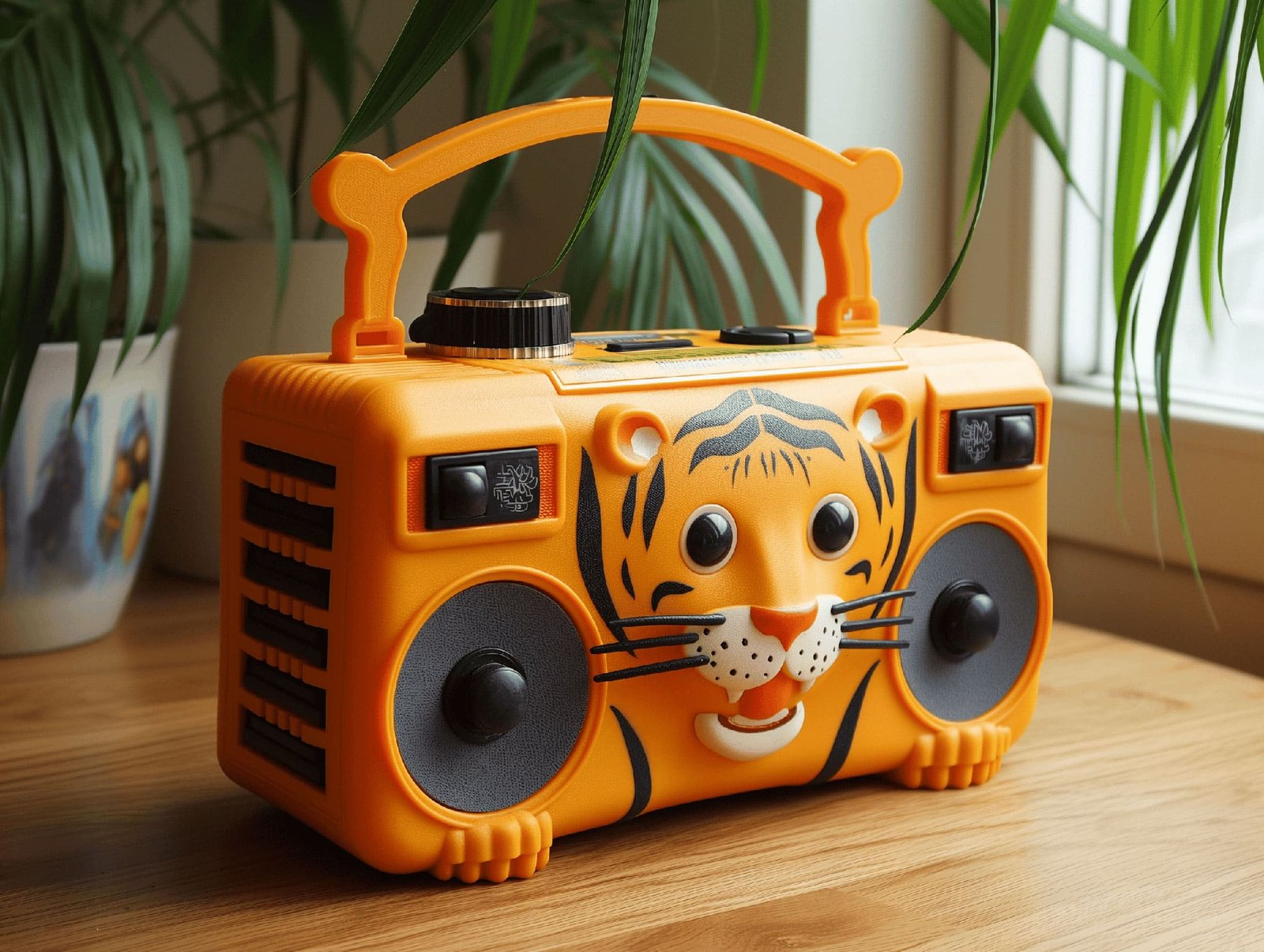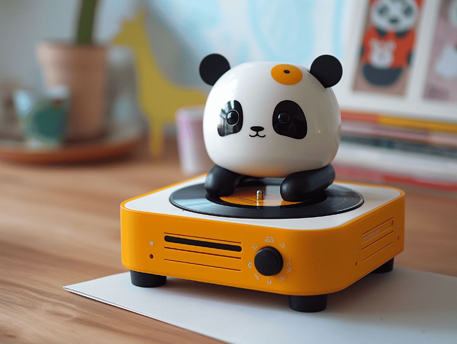 The design of the "Jungle Beats Ensemble" takes center stage with its bold colors and endearing animal motifs that invite interaction and storytelling. The tiger radio, with its striking orange hue and playful features, captures the essence of the jungle’s vibrant energy. The panda turntable setups, in classic monochrome with heartwarming details, echo the gentle nature of these beloved creatures. Every curve and contour is intentional, crafted not only for visual impact but also for ergonomic handling by its users, young and old.